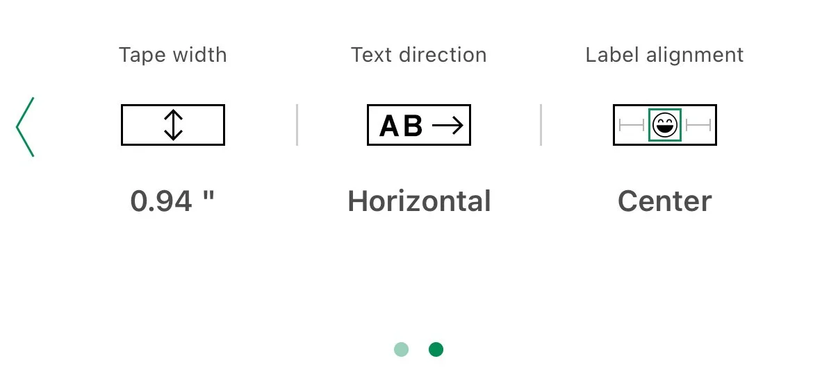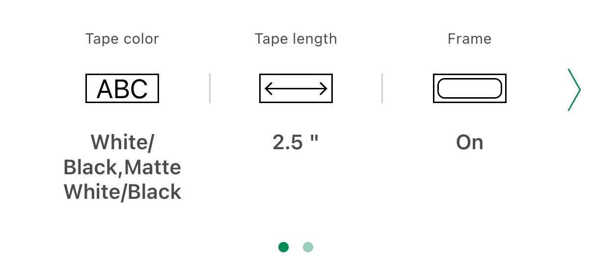 Tape Color: Automatically updated by the app. When using off-brand label tape, the color may not adjust correctly, but the labels will still print correctly.
